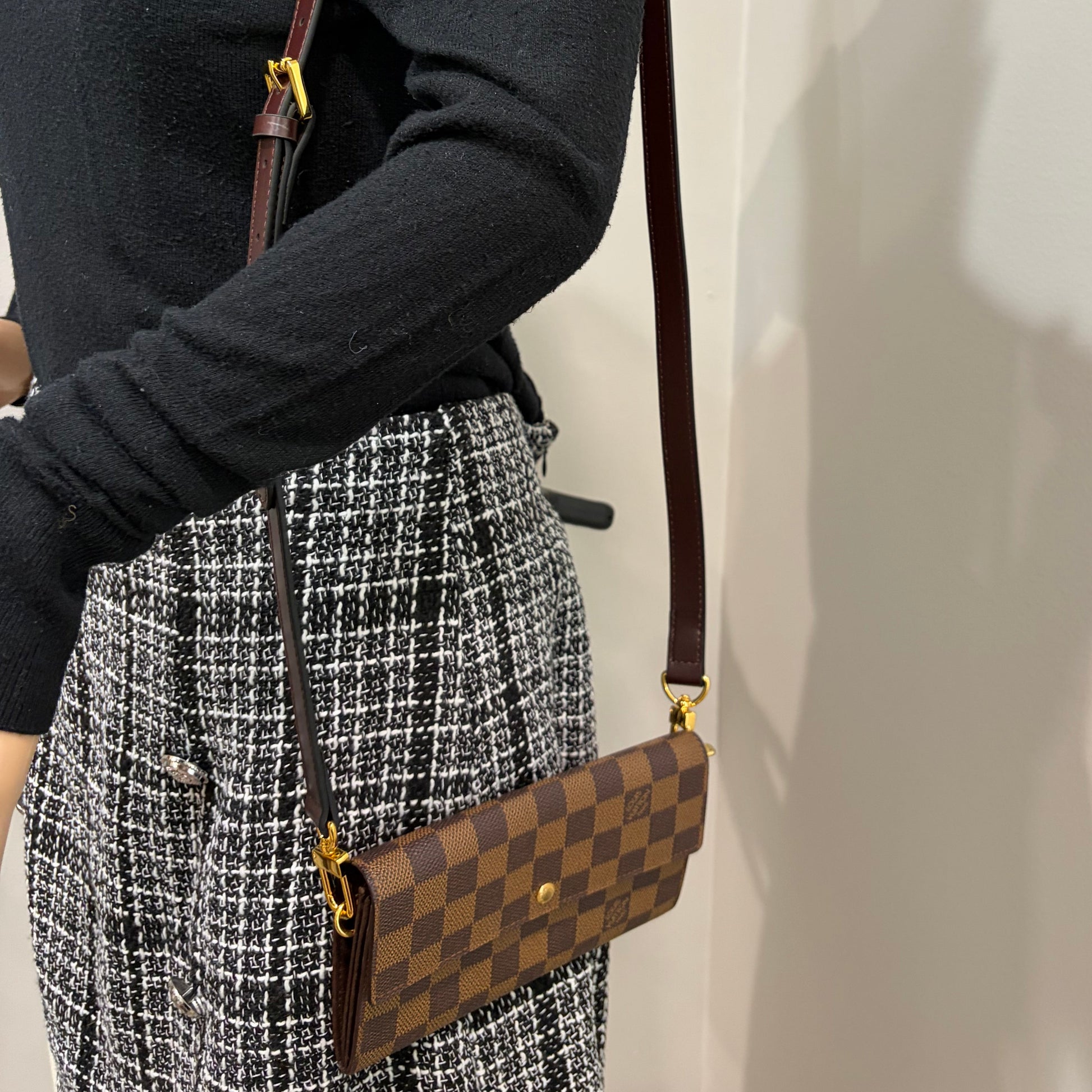 #1101-04 LOUIS VUITTON Damier Ebene Wallet with Removable Strap