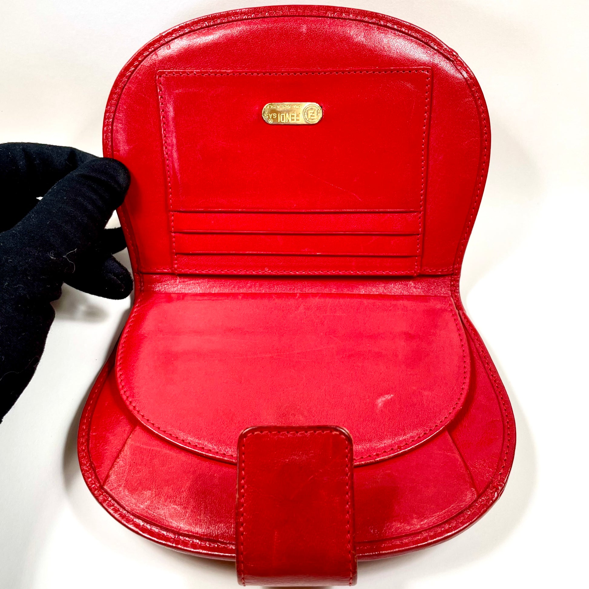 FENDI Red Leather Leopard Print Wallet