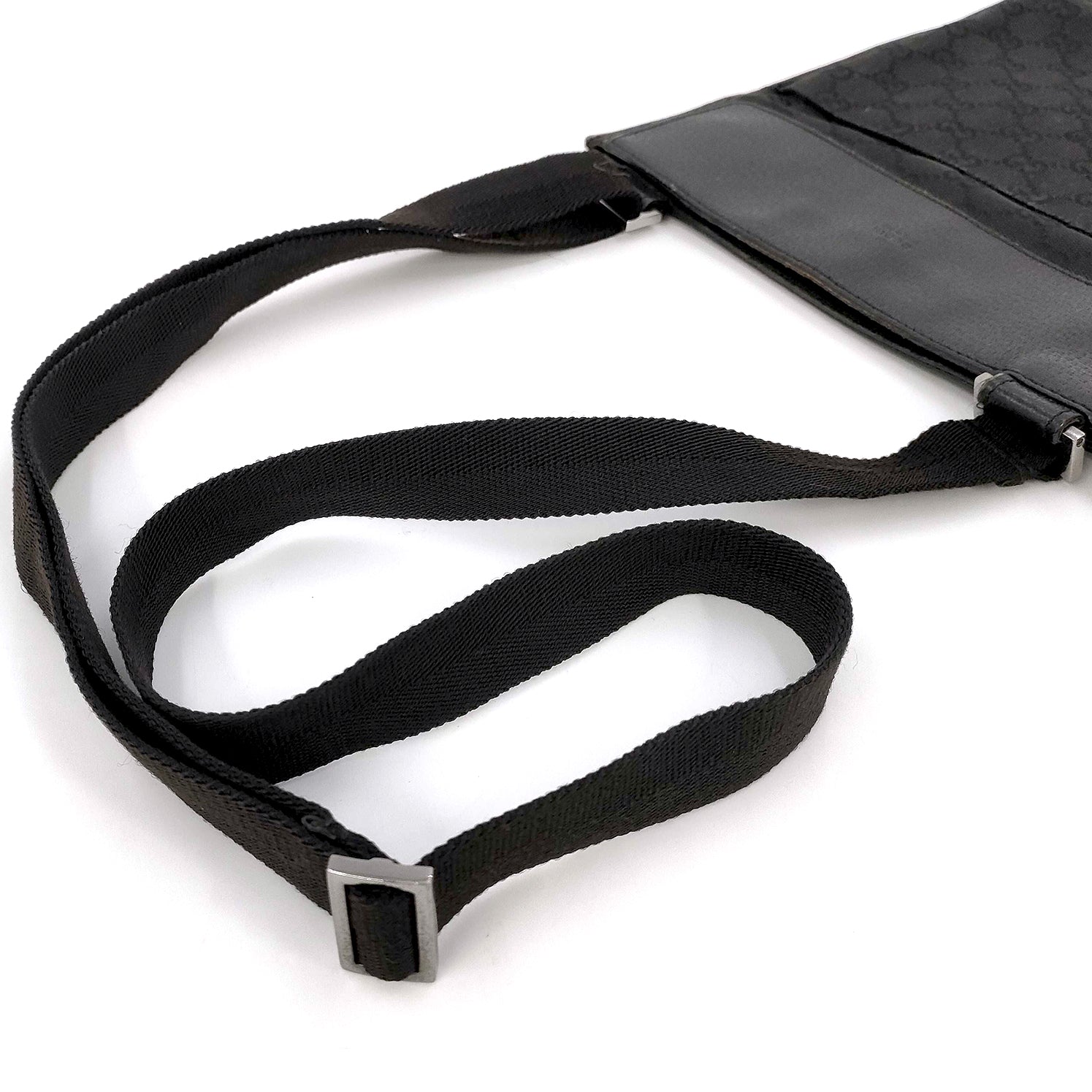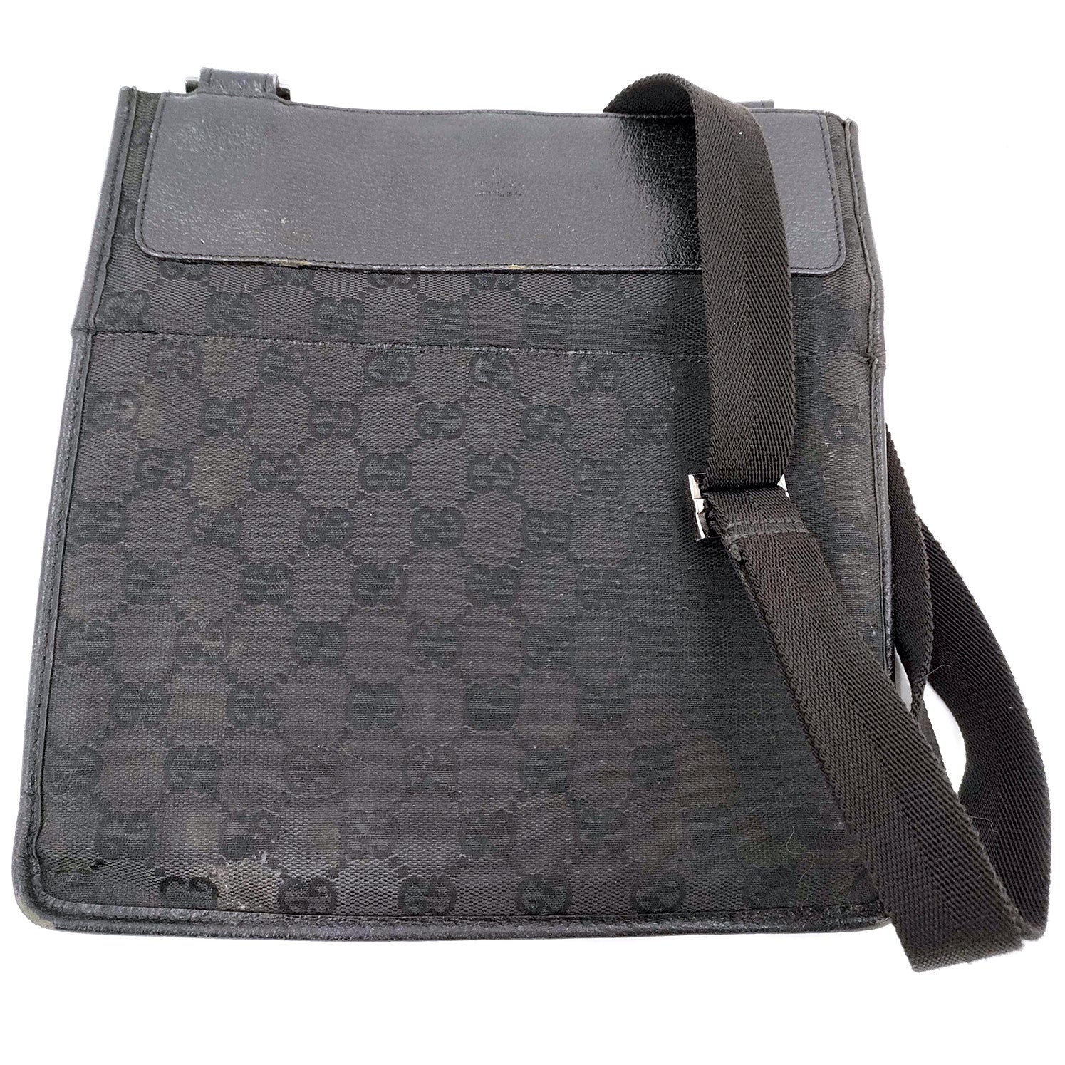 #1160 GUCCI Black GG Canvas Messenger Crossbody