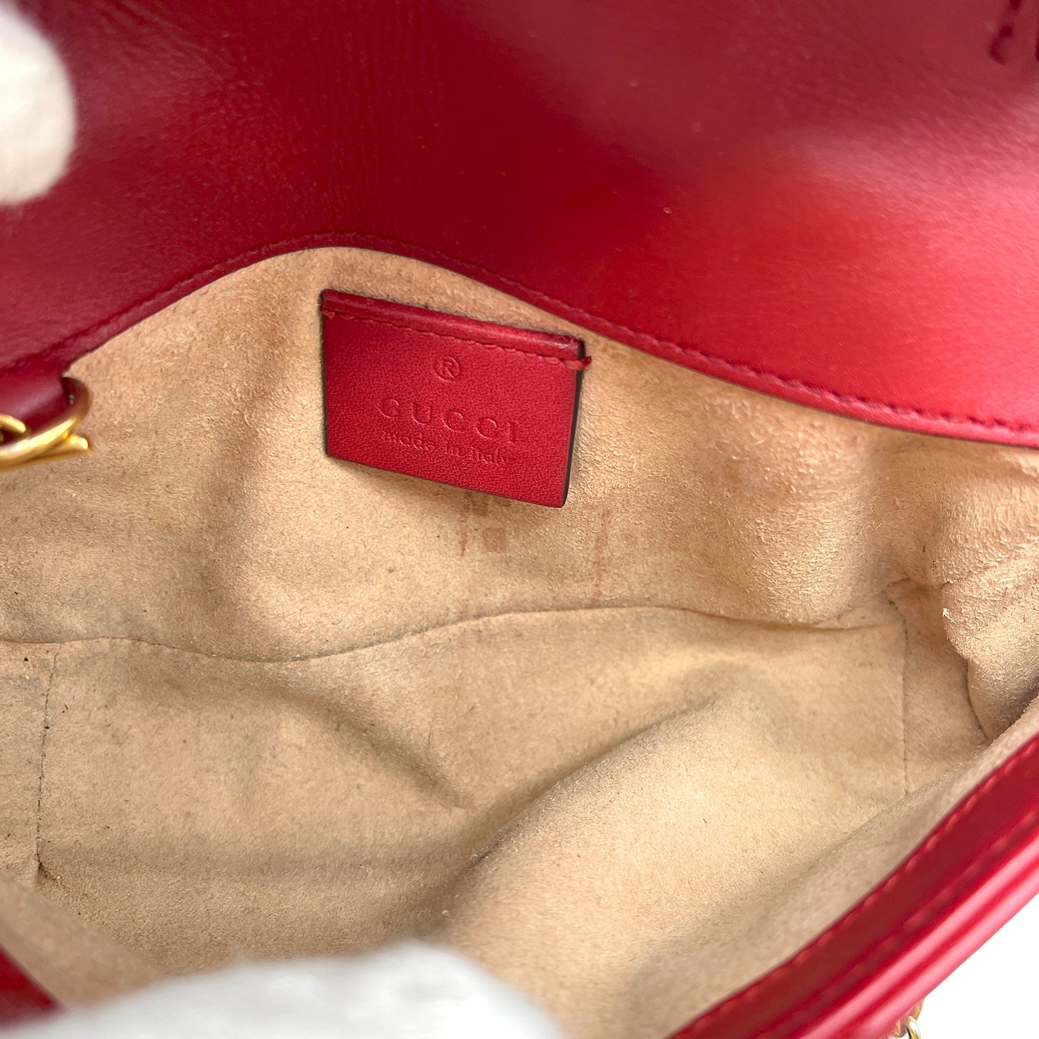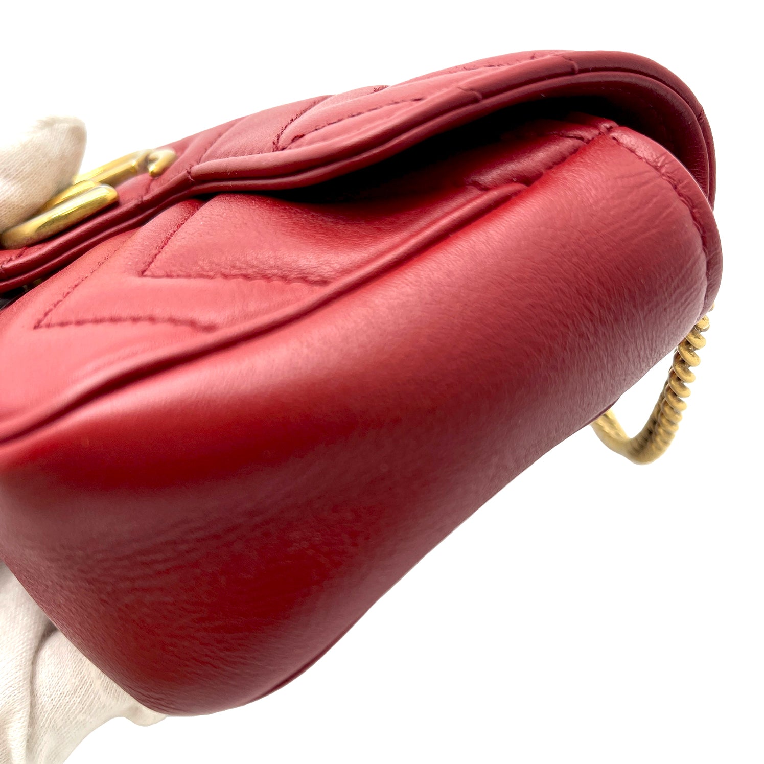#1180 GUCCI Small GG Marmont Red Leather Matelassé Chevron Shoulder Bag