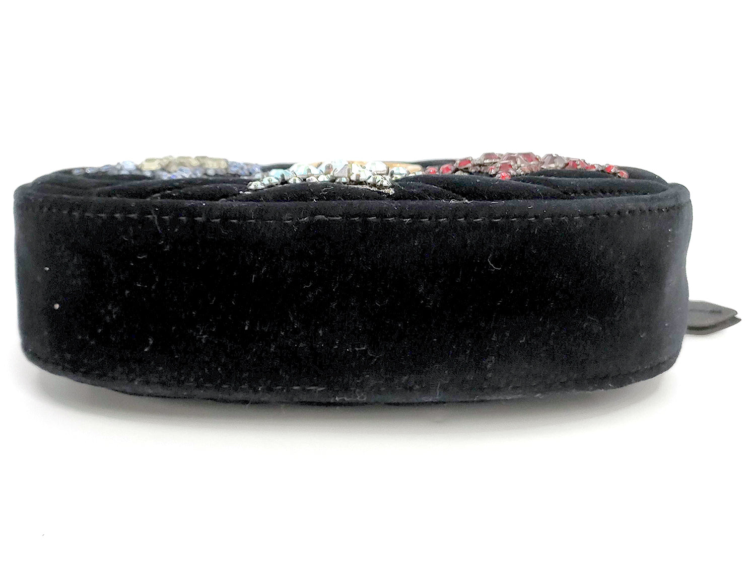 #1371 GUCCI GG Marmont Crystal Stars Black Velvet Matelassé Chevron Belt (Bum) Bag