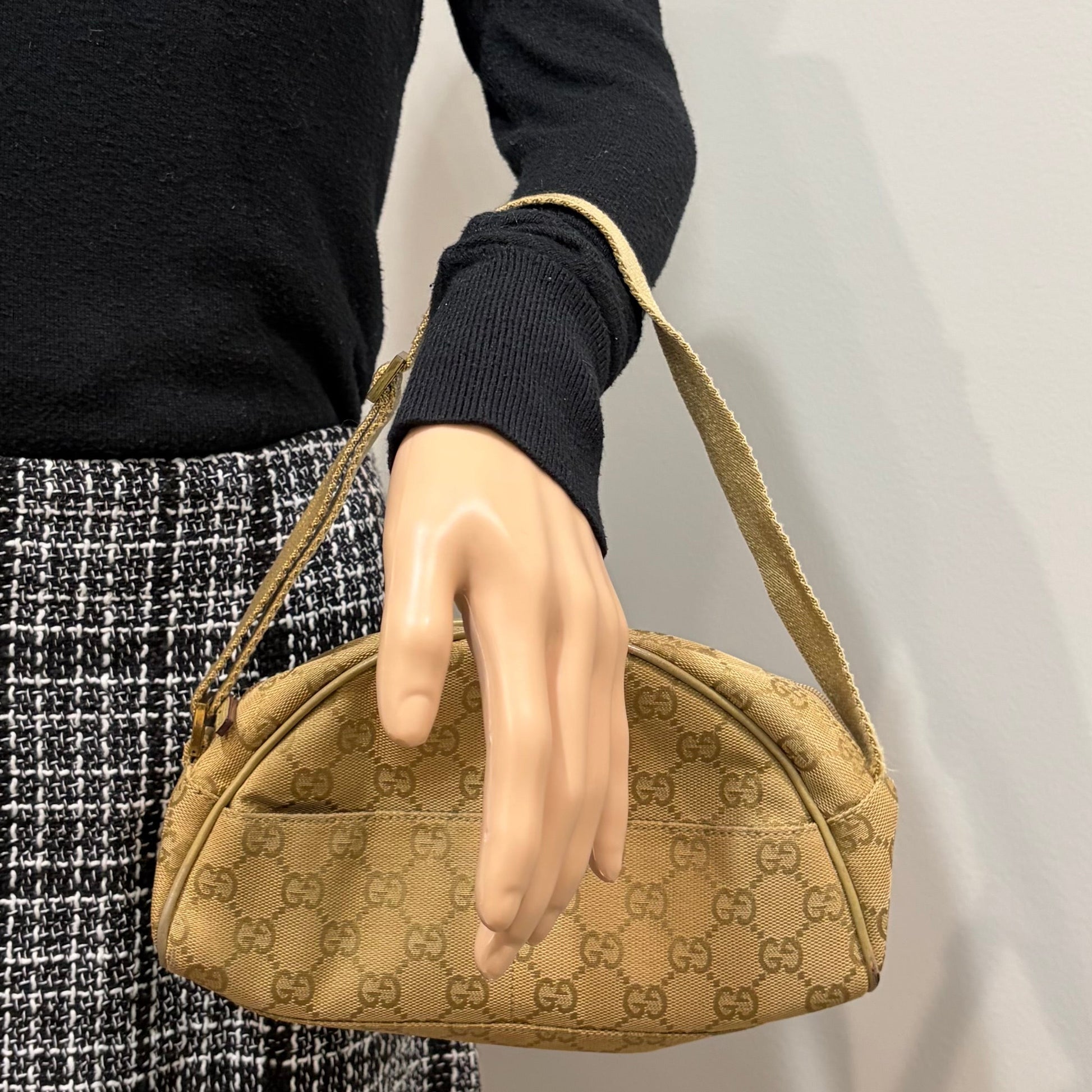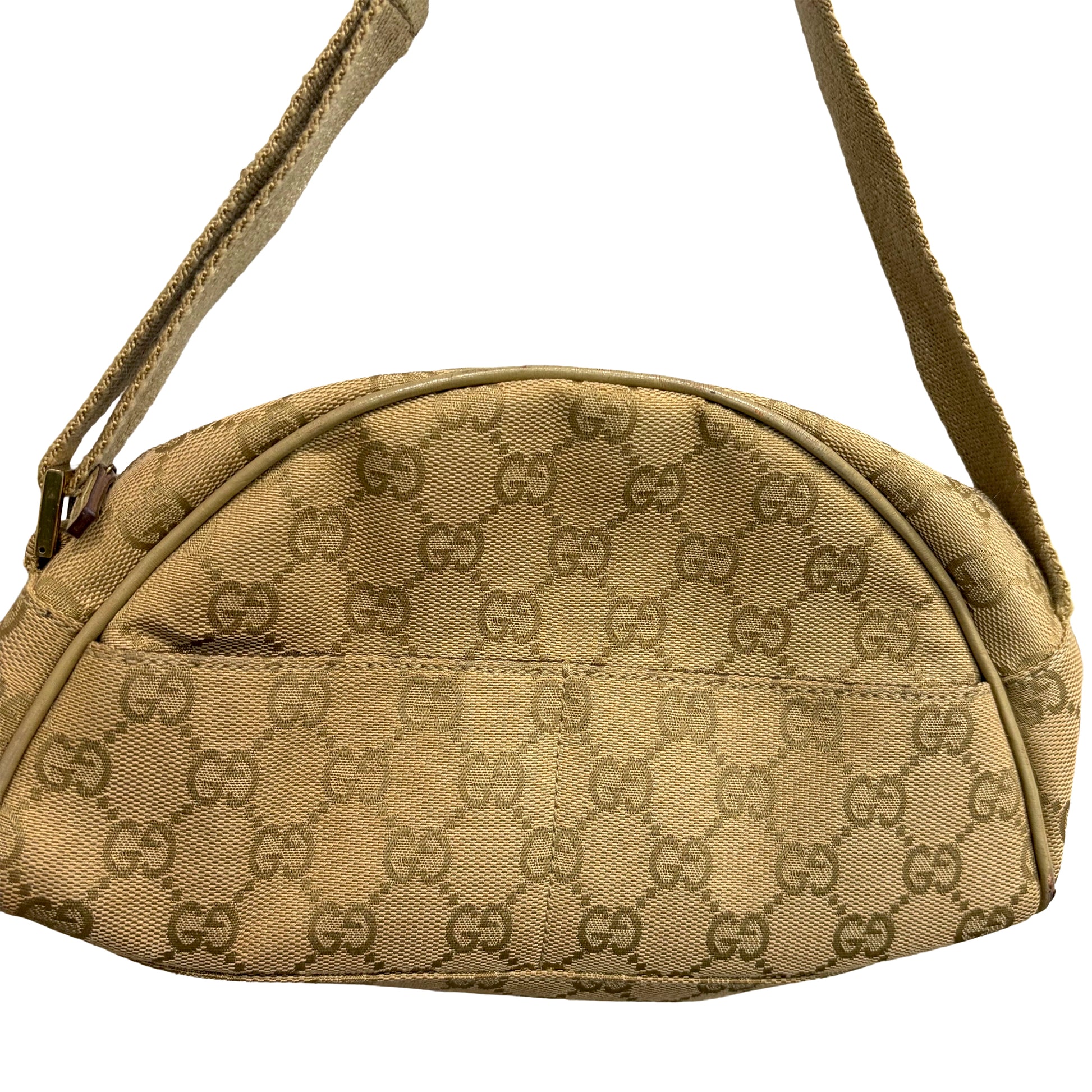 #8208 GUCCI Brown/Green Canvas Shoulder Bag