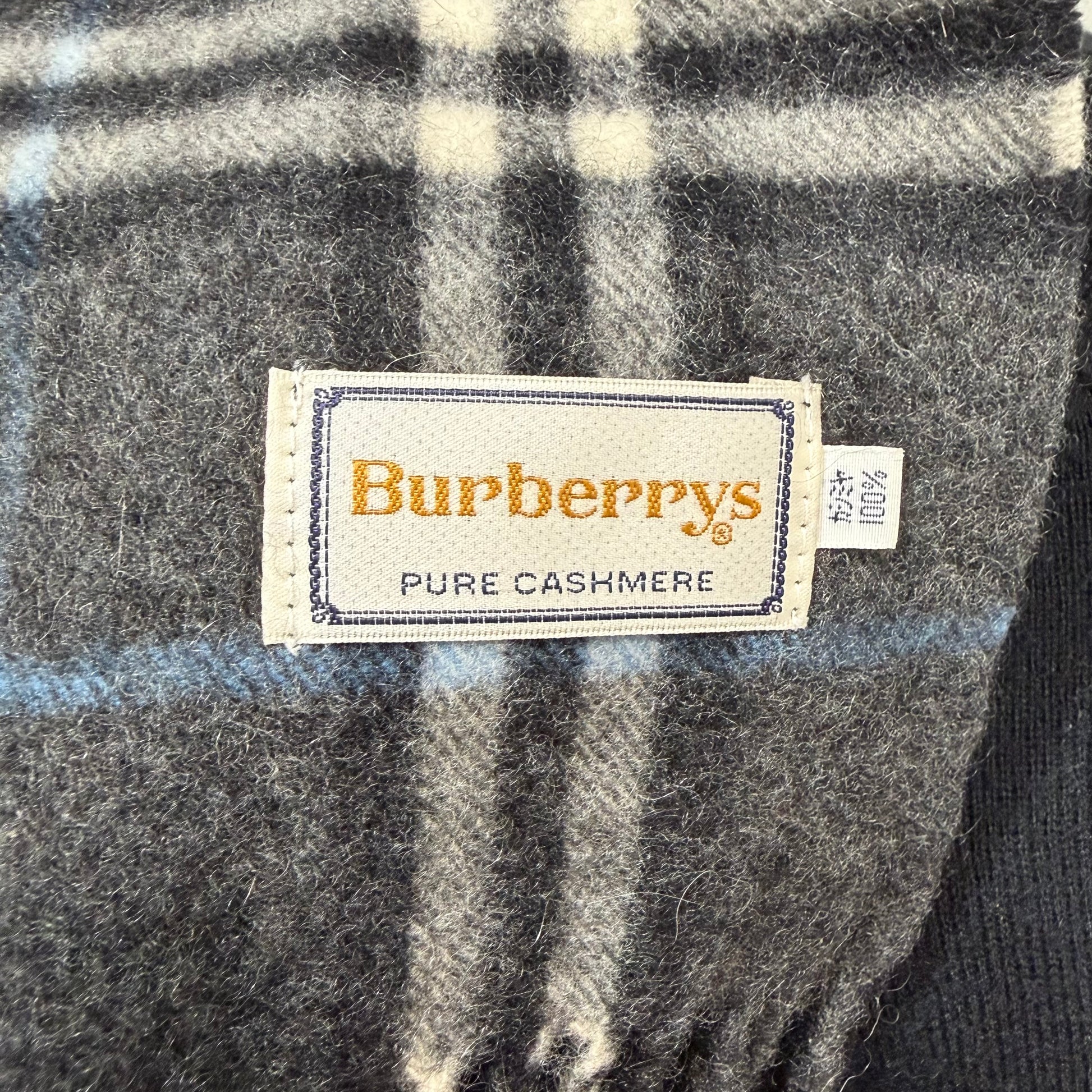 #8223 Vintage BURBERRYS Gray & Blue Check 100% Cashmere Scarf Stole