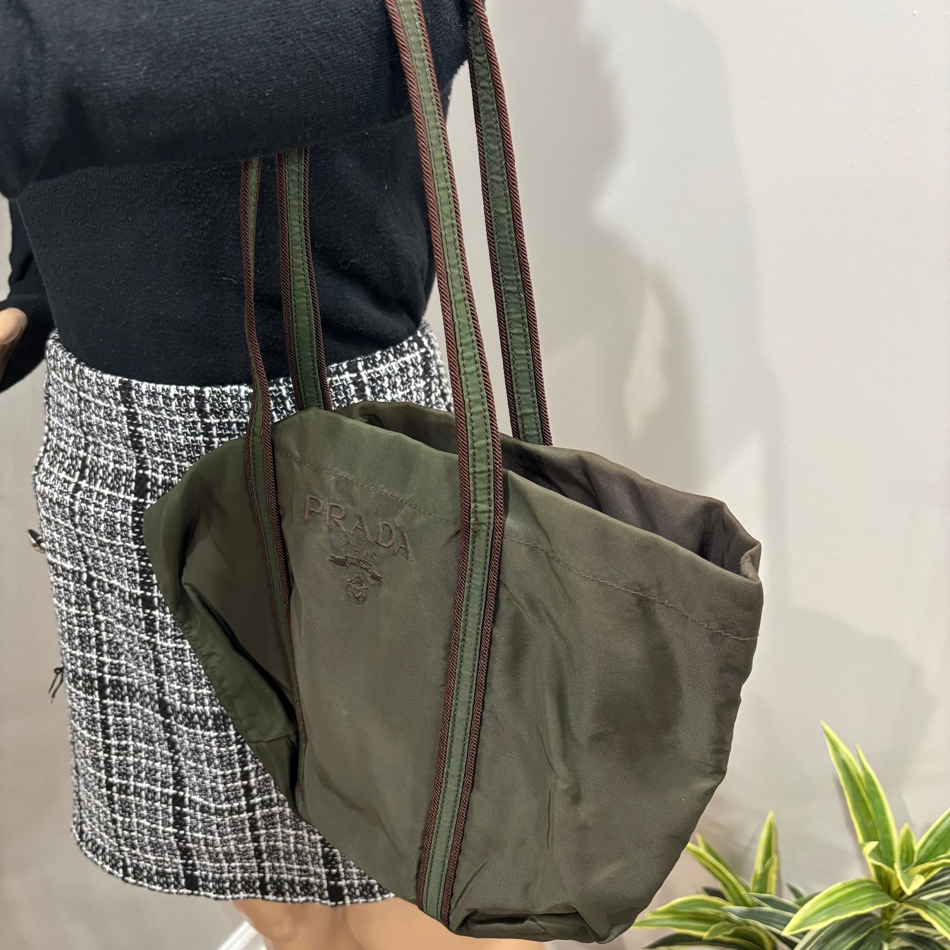 8891 PRADA Green Tessuto Tote