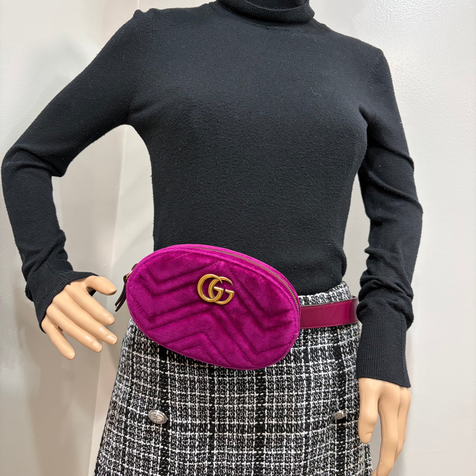 8893 GUCCI Purple GG Marmont Belt Bag Matelasse Velvet MSRP $980