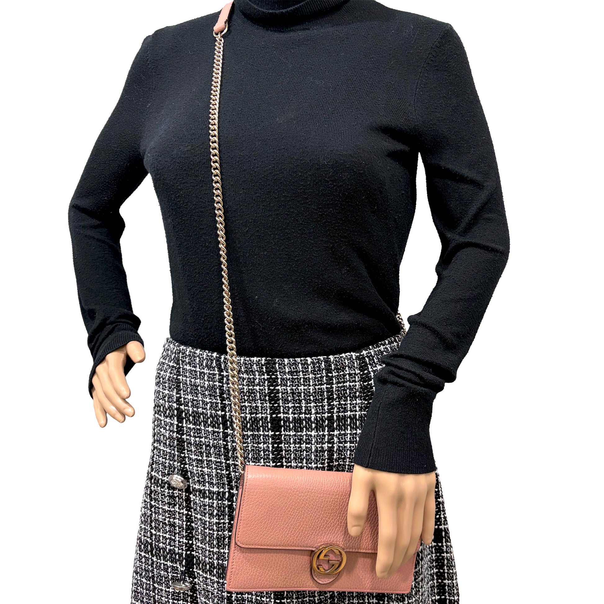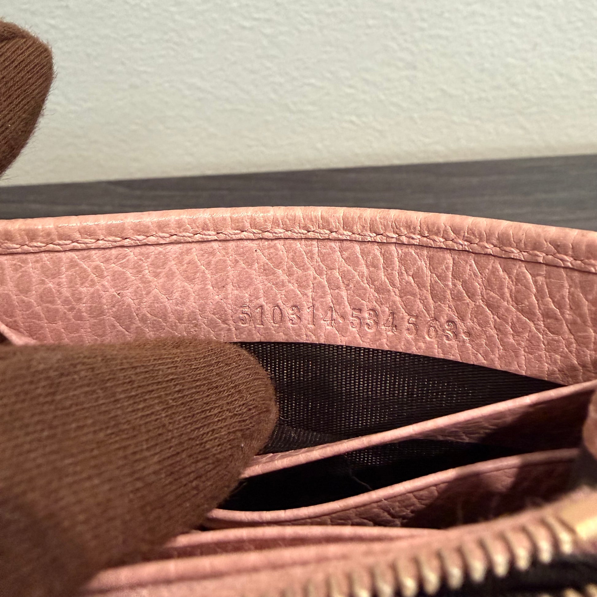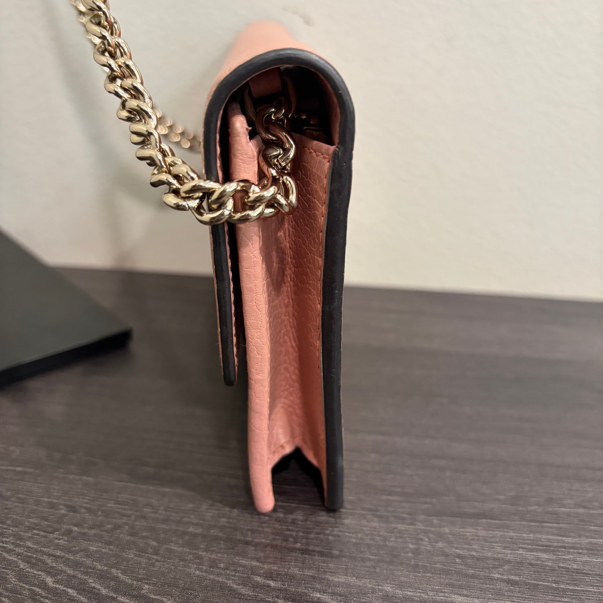 #9106 GUCCI Interlocking G Pink Leather Wallet on Chain